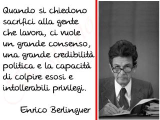 Ho trovato per caso, e una volte lette non ho potuto fare a meno di condividere, le parole qui sopra riportate di un nostro grande uomo politico, che plaudo e ricordo come tale, nonostante io personalmente non mi riconosca affatto nella Sinistra italiana. (In quella attuale e degli ultimi 20 anni, poi, meno che mai.)