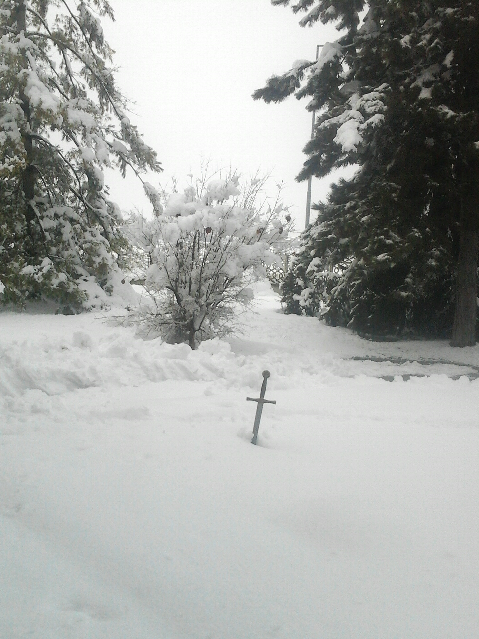 Excalibur, la mitica spada di Re Artù, immersa in 30 cm di neve nel giardino di casa mia…
