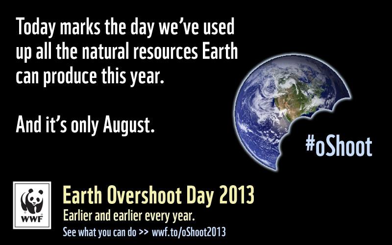 Cosa significa che la Terra è in rosso, e ci resterà per il resto del 2013? Proprio quello che dicevo poco fa: che, secondo i calcoli degli esperti, il fabbisogno di risorse naturali è in deficit, consumiamo più di quanto l’ambiente in cui viviamo possa dare, dunque ci stiamo mangiando il nostro stesso pianeta.