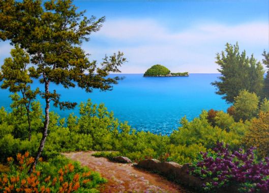 Piero Rasero, The Gallinara island from Julia Augusta street. Oil on canvas 70 x 50