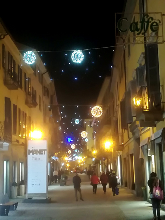 Ma invece di una porzione di cielo, fra i tetti delle vie del centro vedo un campo stellato di lucine intermittenti che fa da sfondo a un’invasione di Death Star bianche e gialle.