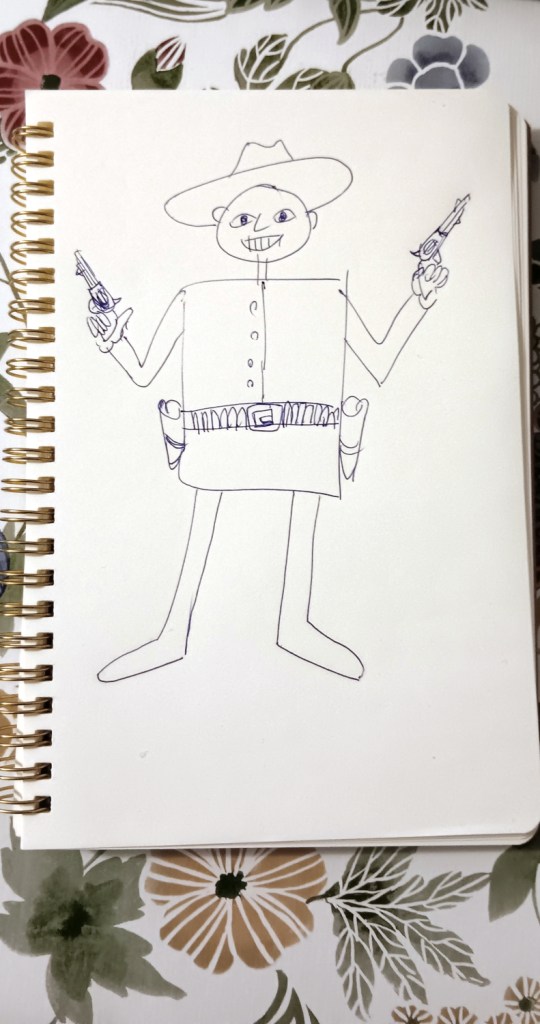 Giusto per darti un’idea più precisa, poco fa mi sono cimentato nella mia versione di un pistolero nello stile di quegli anni primordiali. Picasso me spicciava casa, proprio, ve’?